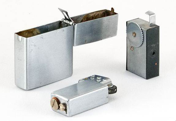 This shows both round and octagonal versions. Note ribbon threaded through the eyelet at left; this made it easier to handle the tiny camera without dropping it.