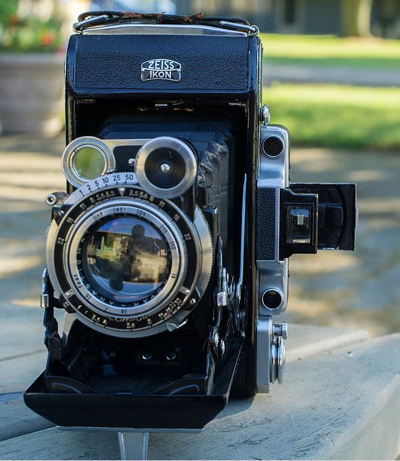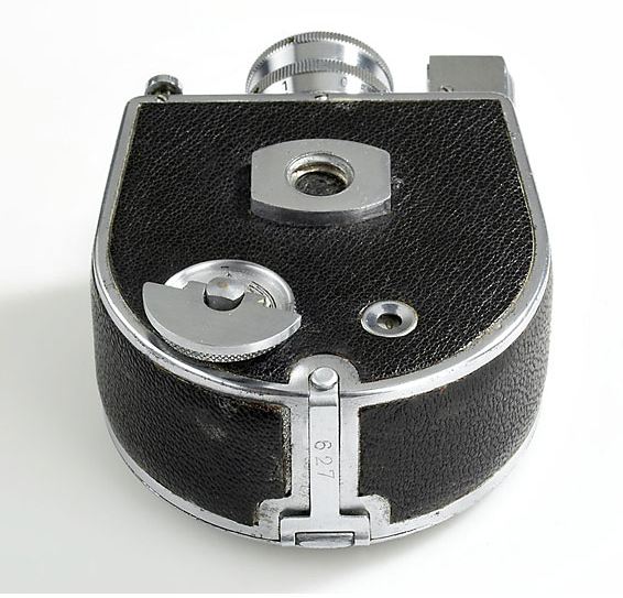 Note that this example has an extra folding viewfinder with crosshairs at the right end of the camera.