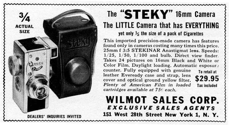 The significance of this camera is that it was the first to make full-frame (24 x 36mm) images on 35mm cine film. The camera was a one-off homemade construction, and I think shows great enterprise on the part of Mr George P Smith of Richmond Heights, Missouri.