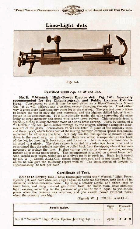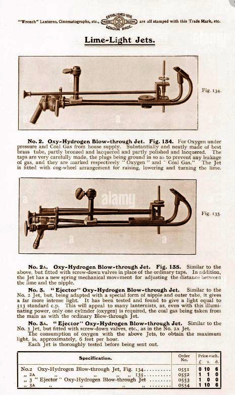 ![]() | Left: Oxygen-gas burners for creating limeight: 18??