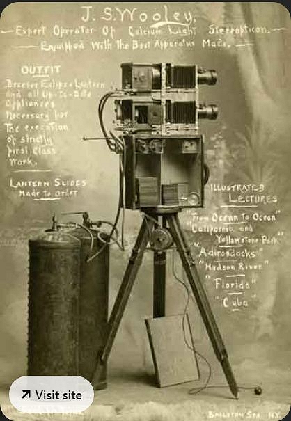 ![]() | Left: A Bessler Stereopticon Projector owned by J S Wooley: 1894