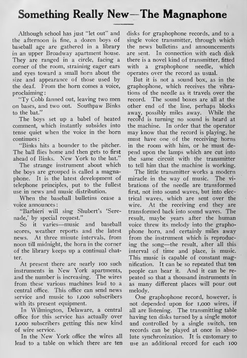 ![]() | Left: The first page of an article on the Magnaphone: 1912