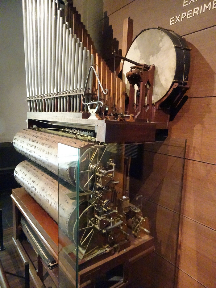 This is a Componium. There are not many about, in fact there is only this one. The Componium was created by Dietrich Nikolaus Winkel of Lippstatt, Germany, in 1821. It uses pins on two barrels to activate organ pipes, a drum, and a triangle. The unique feature of the Componium is that it doesn't just reproduce music, it composes it, in a sense.