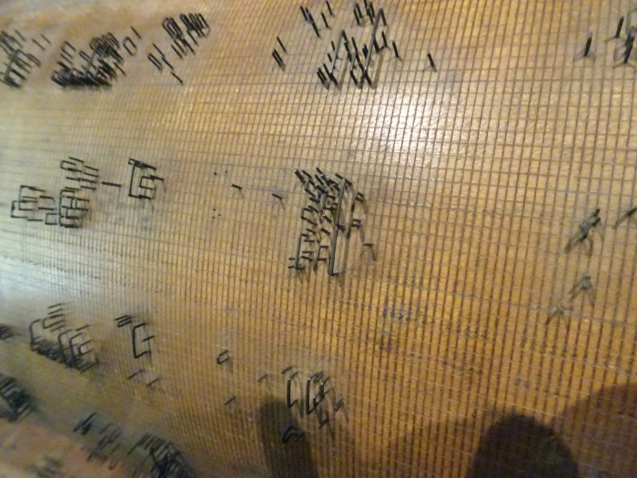 This is a close-up of one of the barrels. Some pins are single, others have a bridge-like form for longer notes.