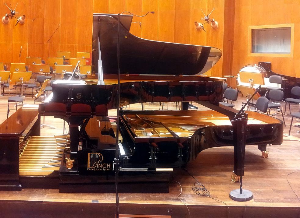 This shows a horizontal pedal piano. The unnatural coupling is composed of two grand pianos, the lower being the pedal piano. I think the Pinchi logo is very cool.