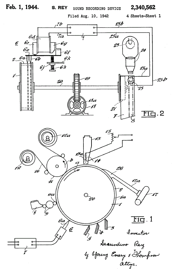 ![]() | Left: The Rey patent; recording: 1944