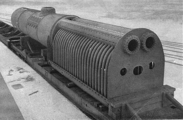 The HP boiler generated steam at 850 psi, feeding the central cylinder. The LP boiler generated steam at 250 psi and fed the two outer cylinders.