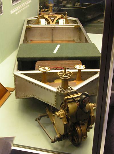 The first model was a very simple proof-of-concept of the 1903 patent. It was 2ft 6in long, 12in wide, and 10in long, with the whole of the internal space being taken up by the gyroscopes, motors and accumulators. No photographs of it are known to exist.
