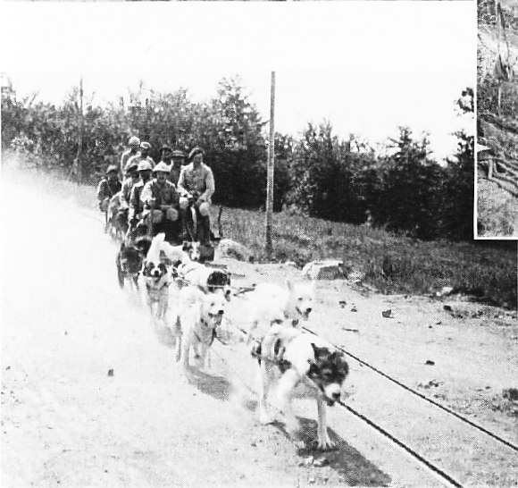 ![]() | Left: Railway truck drawn by six dogs: 1906