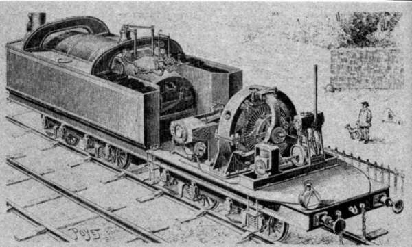 "It is now some three years since Mr. J. J. Heilmann, of Paris, designed and placed in operation his first standard gauge electric locomotive, which was known as La Fusee Electrique and was tested upon the lines of the Compagnie des Chemins de Fer de l'Ouest,of France. The Fusee was of 600 horse power and 120 tons weight and it was designed for hauling the ordinary class of passenger trains. The novelty of this locomotive consisted in the fact that it did not take its current from a feeder connecting with a distant power station, but carried its power station with it the boiler, engine, generators, and motors being all combined in one machine upon one set of wheels and comprising an absolutely self-contained electric locomotive.
