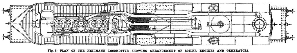 "The above facts show that the design is per se not so altogether indefensible as many of its critics have roundly declared; and the aims of its designers appear yet more reasonable when they state that in building the Heilmann locomotive an effort is being made to make it possible to equip the trunk railroads electrically, without making any radical changes in the road itself. With this fact in view, it must be admitted that whether the arguments above given are sound or not, this machine will enable the railroad companies to experiment with electric traction on a limited scale without undertaking the great expense which will be entailed in the use of the central station system.