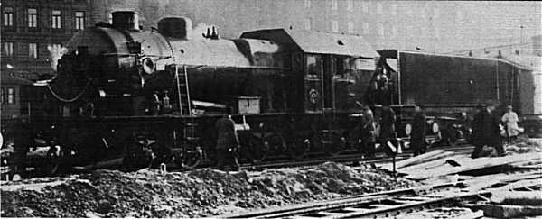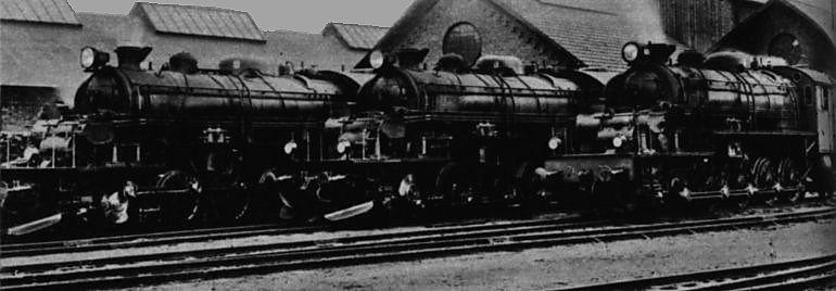 Above: Three Swedish TGOJ turbine engines stand at Eskilstuna in 1936. The left and middle engines are fitted with small snowploughs.