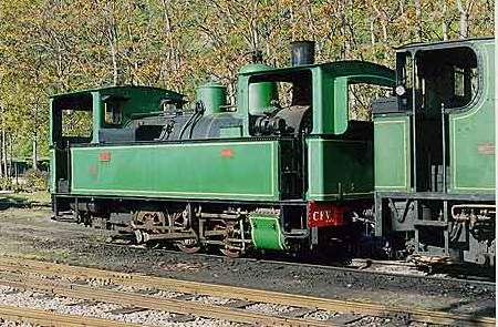 It was "plastiquée" in 1943, which I assume means damaged by the French resistance using plastic explosives. Having been repaired, it was sold to Forges Gueugnon, where it worked on their internal metre-gauge network. After a varied career it was rebuilt at Vivarais, where the forward cabin, which had been "destroyed by the vicissitudes of an over-intensive operation", was replaced. Classified a historical monument, it still runs on the Tournon - Lamastre line, apparently hauling light tourist trains.