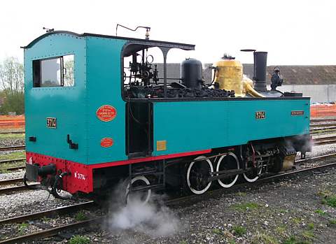 This remarkable 0-6-0 tank engine could not only run in either direction but had a cab at each end. Named "Isere", it began its career in 1909 on the Lyon to St-Marcellin Tram line in the Department of Isere in South-East France. Pinguely was the name of the manufacturer; see Wikipedia. Pinguely also supplied locomotives to the Chemin de Fer de la Baie de Somme. (see above)