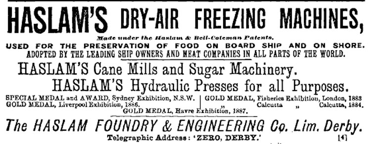 THE HASLAM REFRIGERATING MACHINES: 1882