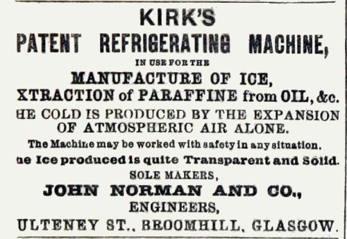 ![]() | Left: Advert for Kirk's cold-air machine in 1872