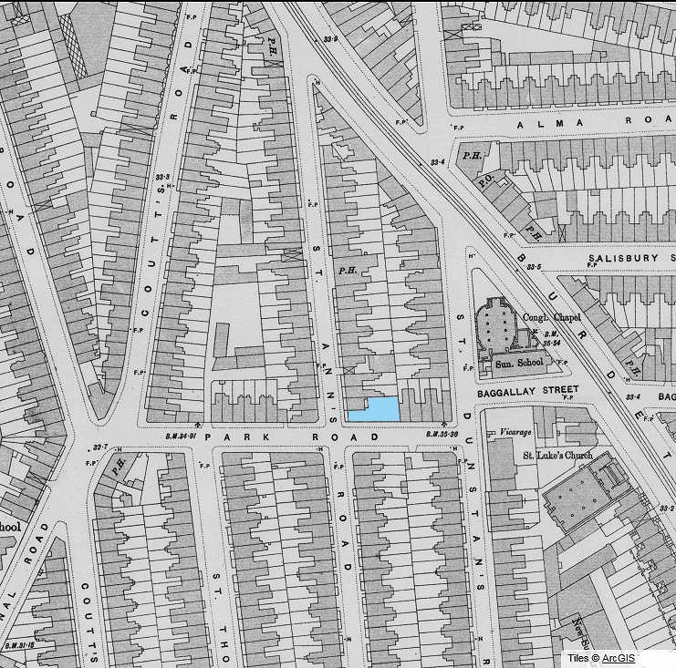 ![]() | Left: Part of Bow, East London: 1893-5 OS map series