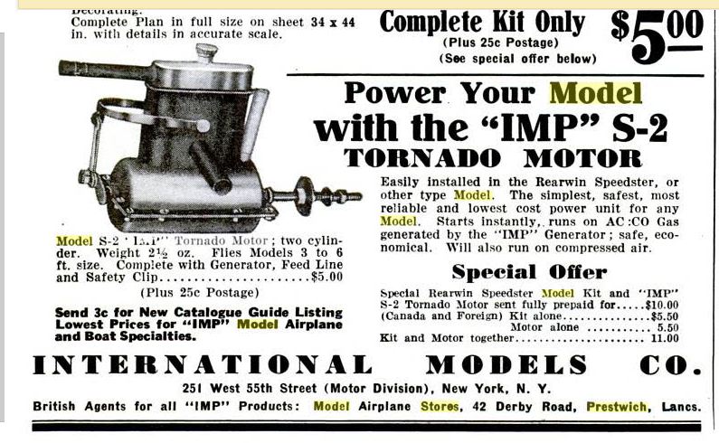 THE IMP CARBON DIOXIDE/ACETYLENE ENGINES FOR MODELS: 1936