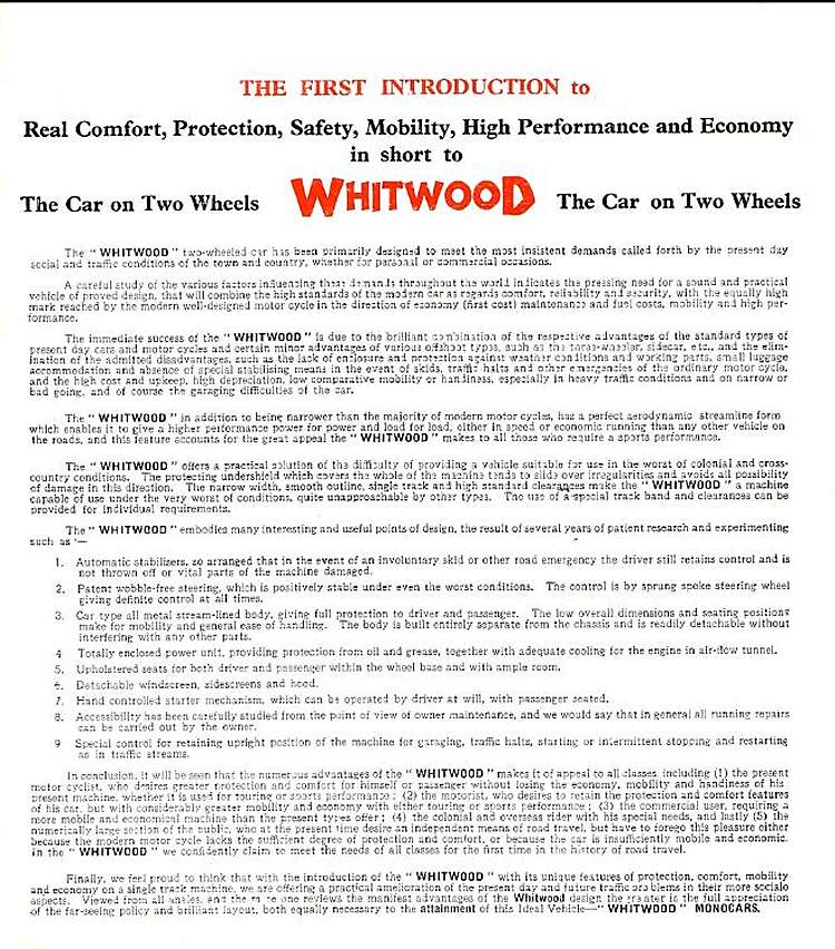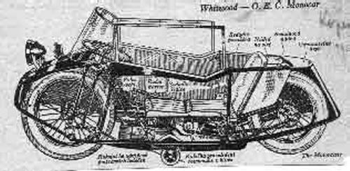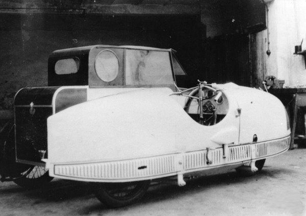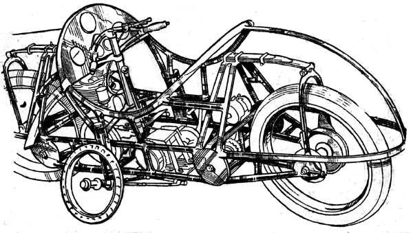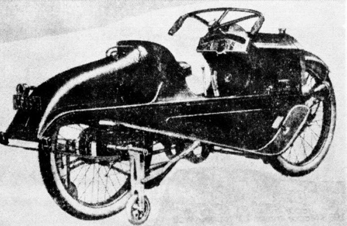 It was a one-off special based on the Ner-A-Car, but with the frames extended by about 5 inches. The body was aluminium, with two out-rigger wheels. There were twin headlamps, a windscreen, a dashboard for instruments and 'an intricate exhaust system', though what was intricate about it and whether it was a good idea is currently unknown. The engine, designed and built by a Mr Haythorn, was a 288cc air-cooled in-line over-head camshaft four with a three-speed gearbox bolted directly to it, with a bevel-gear drive for the rear chain. There was never any plan to market the design.