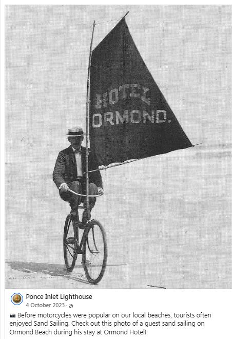 | Left: Sail-cycle on Ormond Beach, Ponce Inlet: date unknown