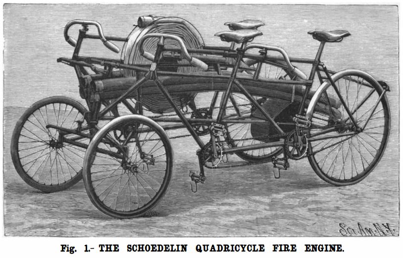 According to a Scientific American, this fire-fighting quadracyclle was exhibited 'in a recent bicycle exhibition at Paris.'
