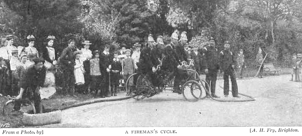 There are also four firemen on bicycles. The boss is presumably the man at far left, who looks as though he might be wearing a sword.