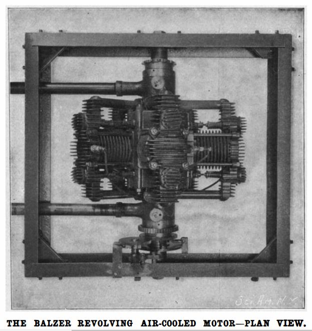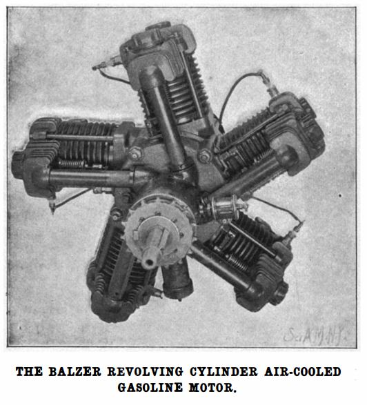 | Left: The Balzer 5-cylinder rotary engine: 1902
