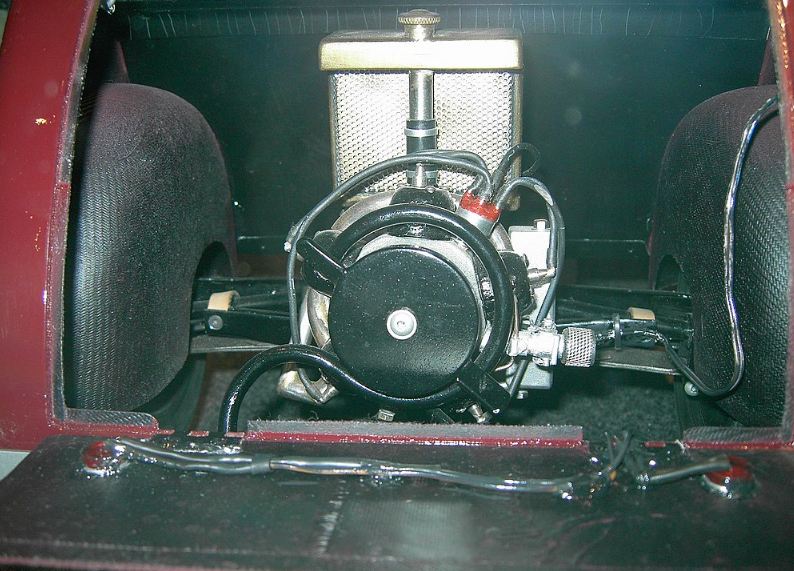 Just above the engine can be seen the distributor, with skew-gear drive from the crankshaft.