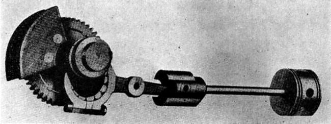| Left: Piston, crosshead and crank of the engine.