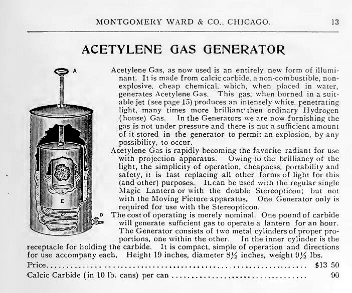 ![]() | Left: Helpful advice on using acetylene as an illuminant