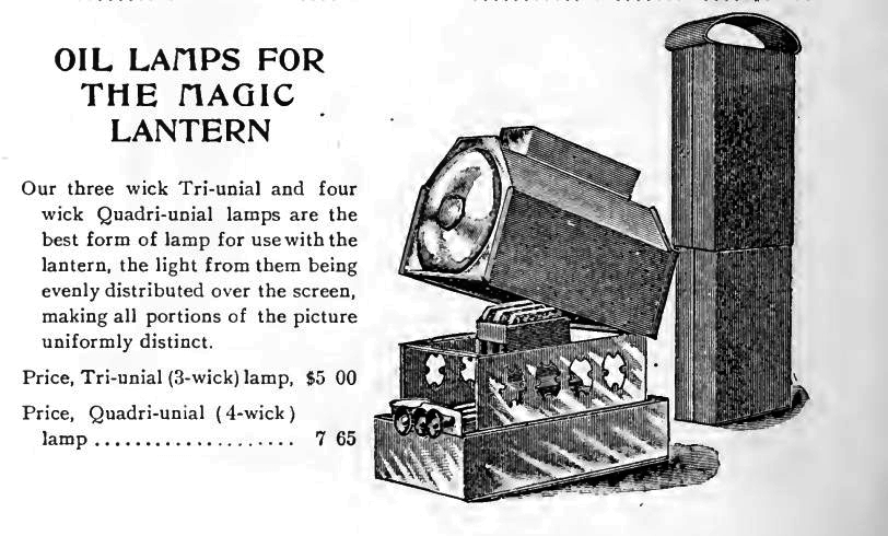 Before the limelight was introduced, there were other ways of showing magic lantern slides.
