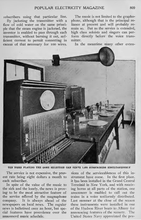 ![]() | Left: Tel-musici installation in a subscriber's home: 1909