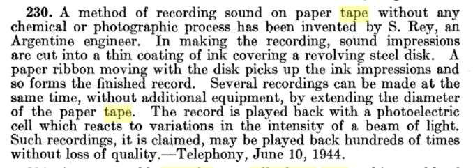 The original is here. Just before it is a report on a system that cut a groove into movie film; this does not appear to be the Fonda recorder, which used cellophane as a medium, but it is hard to be sure.
