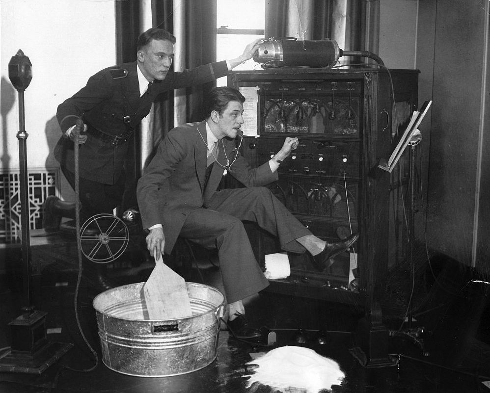 A common plan was to employ musicians who would (hopefully) play music that corresponded with the film action eg love scenes versus police chases. However this was often not considered good enough, and there grew up a whole profession of sound effect artists who attempted to reproduce thunder, horses's hooves, and soldiers marching, using simple mechanical devices that were often called 'traps'. A familiar example is using two coconut-shell halves to simulate a horse's hooves. Sounds effects were also used in making radio programs.
