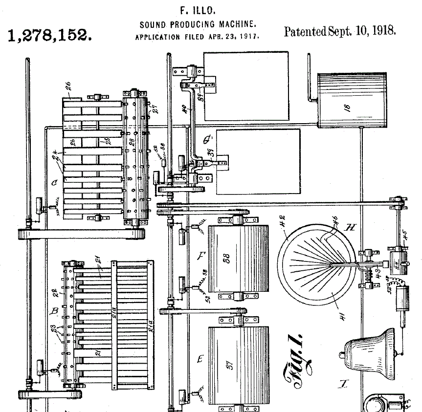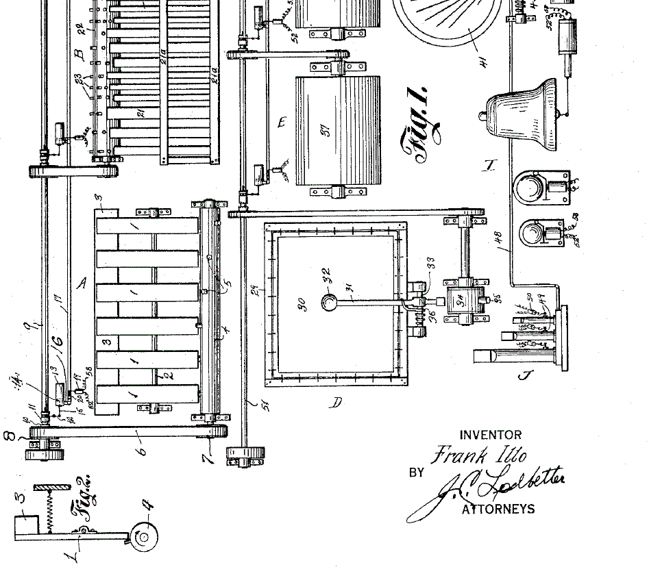 This is the bottom half of the patent drawing of Frank Illo's Cinema Effects Machine.