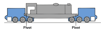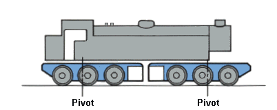 The boiler is rigidly fixed to the rear powered unit. The front engine unit pivots on the rear one, and a sliding bearing takes the weight of the forward part of the boiler.This does not at first appear to be the best way to articulate a loco as the front end of the boiler, being fixed to the rear wheels, sticks out on curves. However it was very popular and successful in the USA |