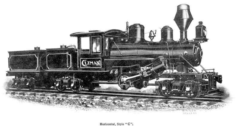 Above: A 20-ton Climax twin-bogie at work on R E Woods tramway in West Virginia, which had 15% grades and 40-degree curves.