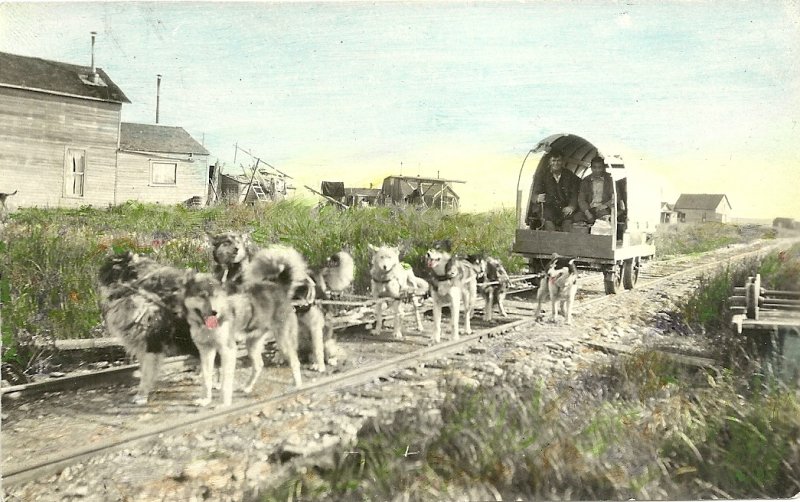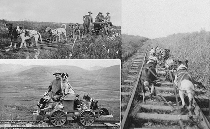 ![]() | Left: Railway truck drawn by six dogs: 1906