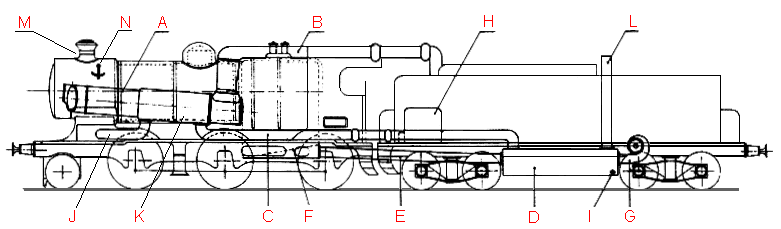 Above: The Irish Franco-Crosti and its vital parts. The locomotive as constructed differed somewhat from this drawing; for example there was originally no chimney at the front.