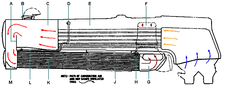 Above: Side elevation of a 42-90 showing the combustion gas paths