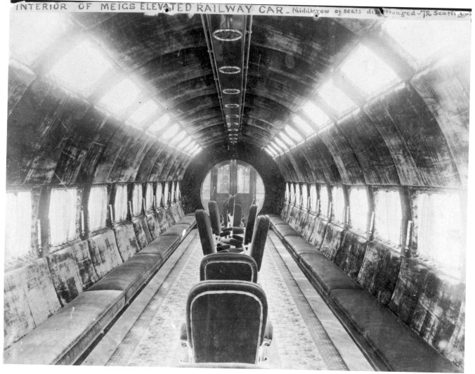 ![]() | Left: The inside of the Meigs passenger car: 1886