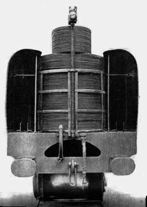 For some time this page has suggested that the Reid-Ramsey locomotive may have been fitted with a rotating evaporative condenser. It is now clear that this was not the case. Such a condenser was fitted to the Armstrong-Whitworth Turbine Locomotive, and the information that used to be on this page can now be found there.