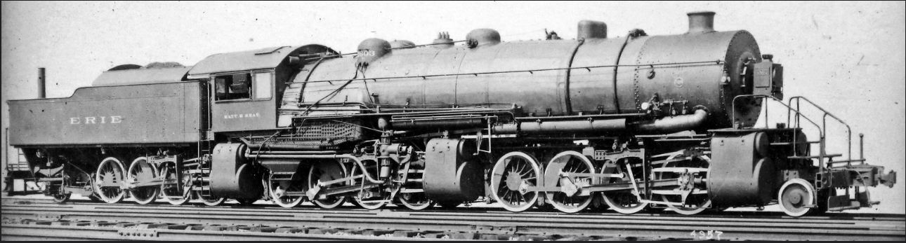 Above: The Matt H Shay, a triplex used for heavy freight haulage on the Erie RR. Note steam exhaust pipe at rear.