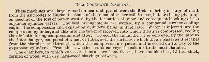 Bell and Coleman were one of the leading suppliers of air refrigrators.