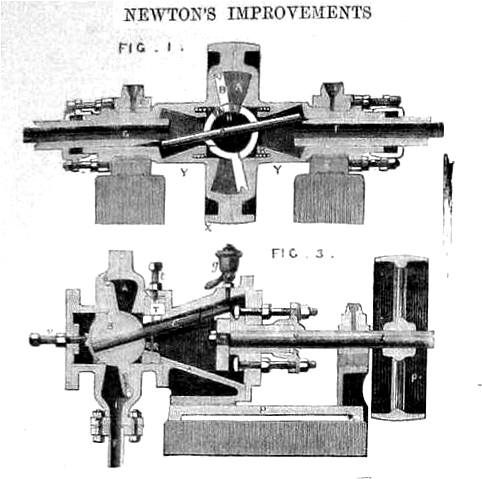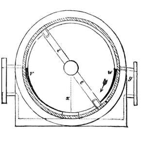 The roots of steam disc engines go back a long way. In 1820-something (the exact date appears to be obscure) the mill-owners Edward & James Dakeyne commissioned a a hydraulic or water engine to make use of high-pressure water available near their factory site. The basic design was similiar to the Davie engine below, but with the shaft vertical.