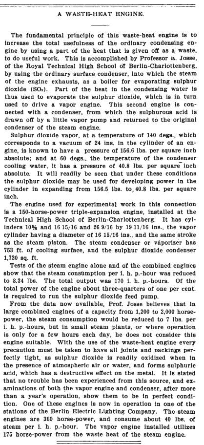 ![]() | Left: Professor Josse's sulphur dioxide engine: 1901