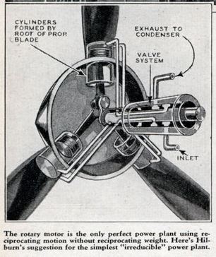 ![]() | Left: Captain Richardson's radial steam engine in a propellor: 1932