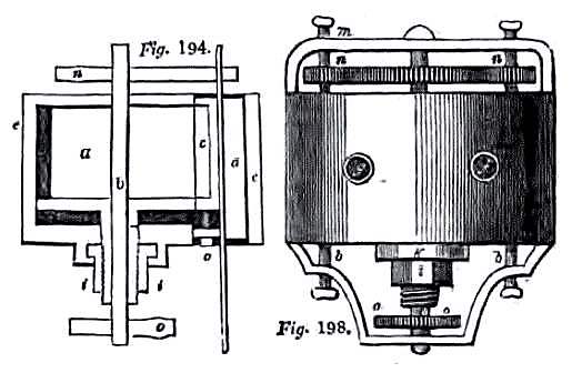 According to Bourne, it worked thus: the ends of the rotor NN are not concentric with the casing, but jam against the shoes when it rotates in the direction of the arrows. The springs p carry the shoes round with the rotor.