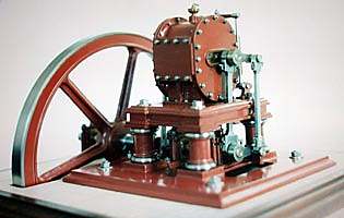 Note the heavy flywheel to the left, more than twice as big as the engine.