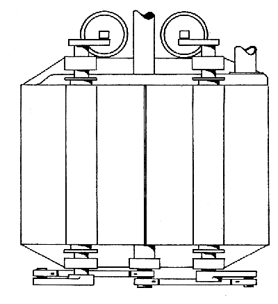 | Left: Ericsson's Vibrating Engine: plan view. Aft is at the top.